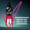 Shield antiperspirant deodorant defends on every level, helping to protect against sweat and body odour for up to 72 hours. Move more. You re designed for it. Walk more. Run more. The more you move, the better you feel, and the more Shield antiperspirant deodorant protects. Beat sweat and body odour on the go. Stay cool and confident for up to 72 hours with Shield antiperspirant aerosol deodorant.