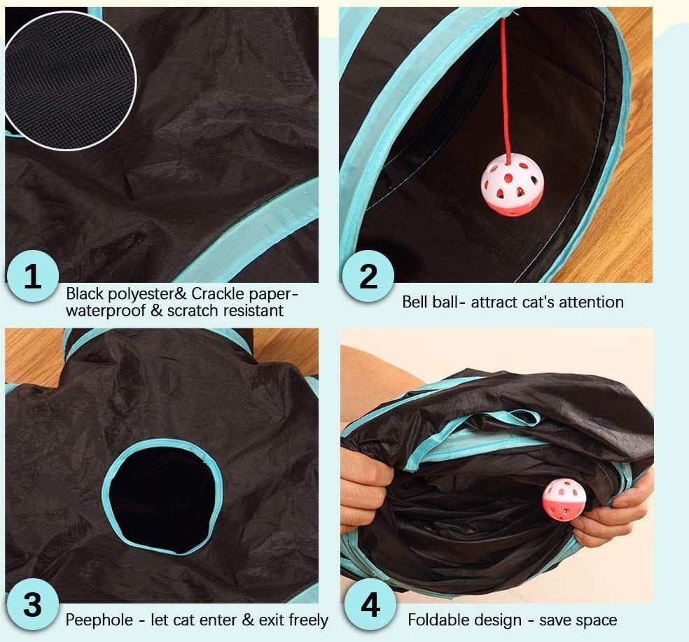 5 spacious connected tunnels appeal to the cat to hide, stalk, pounce and chase with each other in it, encouraging healthy activity