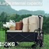 [ Large Capacity & Durable ] Dimensions unfolded: 87Ã50Ã96cm; Dimensions folded: 75Ã50Ã20cm; The heavy-duty metal frame supports up to 150kg; Made of 600D Oxford fabric with PVC coating that is waterproof, and tear-resistant. [ Front Pockets ] Featuring 2 front mesh pocket for valuables and small items, such as cups and drinks. [ Adjustable Handle ] The collapsible wagon boasts a smoothly 90 rotating, up and down adjustable handle for easy pushing and pulling. [ Universal Wheels ] Equipped with 360 swivel front wheels that move smoothly over any terrain; With brakes that allow you to easily lock the cart and prevent slipping on slopes. [ Quick to Fold and Store ] This wagon’s compact design folds into a mini size effortlessly with one hand; Saves time and space and is convenient to carry it anywhere.What’s in the box