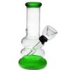 Compact glass bong with coloured base and mouthpiece and rubber grommet down stem bowl