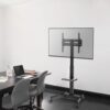 This low cost but versatile AV trolley fits most 32″-55″ TVs. Can be used in many areas such as homes, offices, conferences, restaurants, hospitals and more. The tool less tiltable plate can be ctilted up and down to position the screen for a better viewing experience.Built in quick release spring lock for adjusting to desired height. The equipment shelf provides extra storage for small devices.