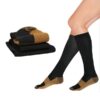 These copper embedded fiber compression socks provide support due to the densely structured material. The optimal compression increases blood flow during a long flight, sitting, or standing, and prevents swelling and inflammation.