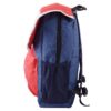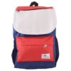 This cool navy, red and white backpack comes with one main spacious, nylon lined compartment with a divided section, a zipper and an overlying flap with a hook and loop closer.