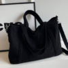 1 x Corduroy Texture Multi-Pocket Tote Bag With Adjustable Strap – Black