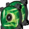 Corsair Air Series LED high static pressure PC case fans combine efficient high pressure airflow with striking LED lighting. They’re custom designed to deliver air directly to high-temperature components with less noise and turbulence than ordinary fans. The custom-molded blades are translucent and have a frosted texture, so the light from the four LEDs adds a dramatic effect.