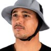 The Surf Bucket Hat is designed for water use and features SPF quick-dry fabric, adjustable fit and a contoured chin strap. Our bucket hat includes mesh ventilation and a removable connector for your rash shirt or wetsuit. Perfect for surfing in the tropics.