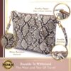 Comes with an easy pull zip tag, removable wrist strap and crossbody strap