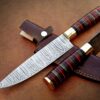 Custom Hand Forged Damascus Knife With Leather Sheath