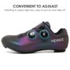 – The cycling shoes adopt a portable lacing system, which can be loosened and tightened by rotating, making it easy to put on and take off. The lock (buckle) is adjustable to fit different instep heights and shapes.