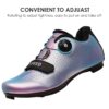 – The cycling shoes adopt a portable lacing system, which can be loosened and tightened by rotating, making it easy to put on and take off. The lock (buckle) is adjustable to fit different instep heights and shapes.