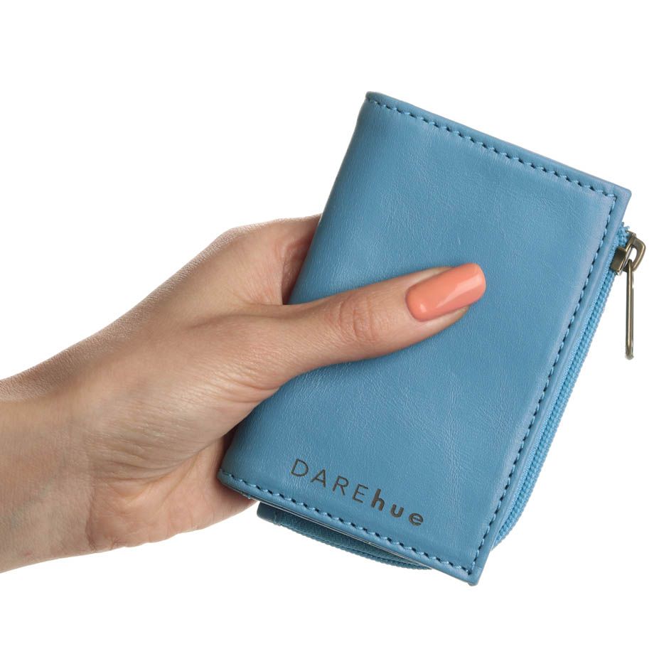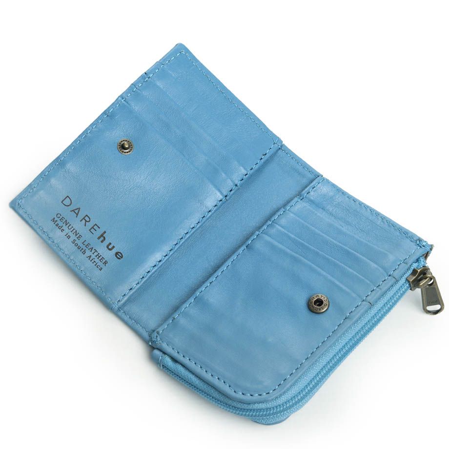 DAREhue - Small Slim Ladies Leather Wallet - 8 card slots - sky blue