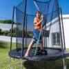 Our 240 trampoline is very safe thanks to its protected entrance airlock and its safety net which blocks access to the springs. 5-year warranty offered on the structure and the jumping mat.
