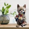 Cat garden gnome statue figurine – best art décor for indoor outdoor home or office