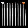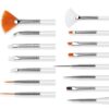 – 15 x Piece Nail art brushes: 2 x Flat Fan Brushes, 1 x Angled Head Brush, 1 x Pattern Brush, 2 x Liner Brushes, 3 x Flat Brushes, 3 x Oblique Brushes, 1 x Dotting Pen Brush, 1 x Drawing Brush, 1 x Petal Brush