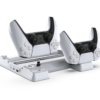 This product can charge two PS5 original handles at the same time. When charging, you can see the orange breathing light from the front of the handle, and the orange breathing light of the handle will go out after fully charged. (Note: Charging only when the handle is not connected to the host An orange breathing light will be displayed. If the handle is connected to the host, only a white long light will be displayed on the handle when charging. If the handle is being charged in the game, the handle will be long blue and white light).