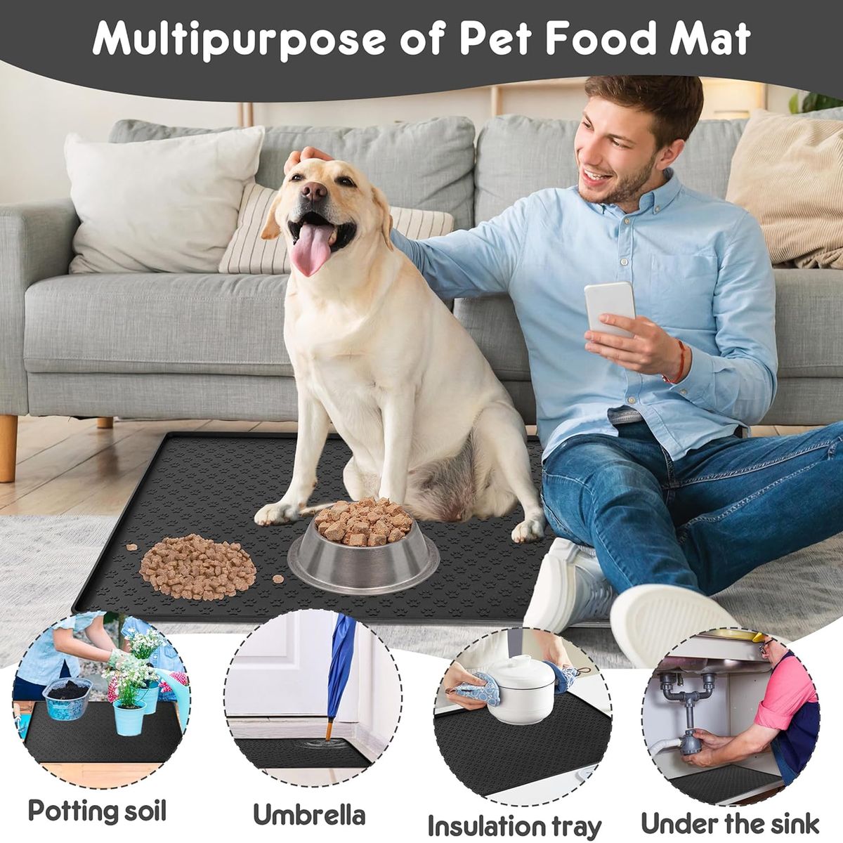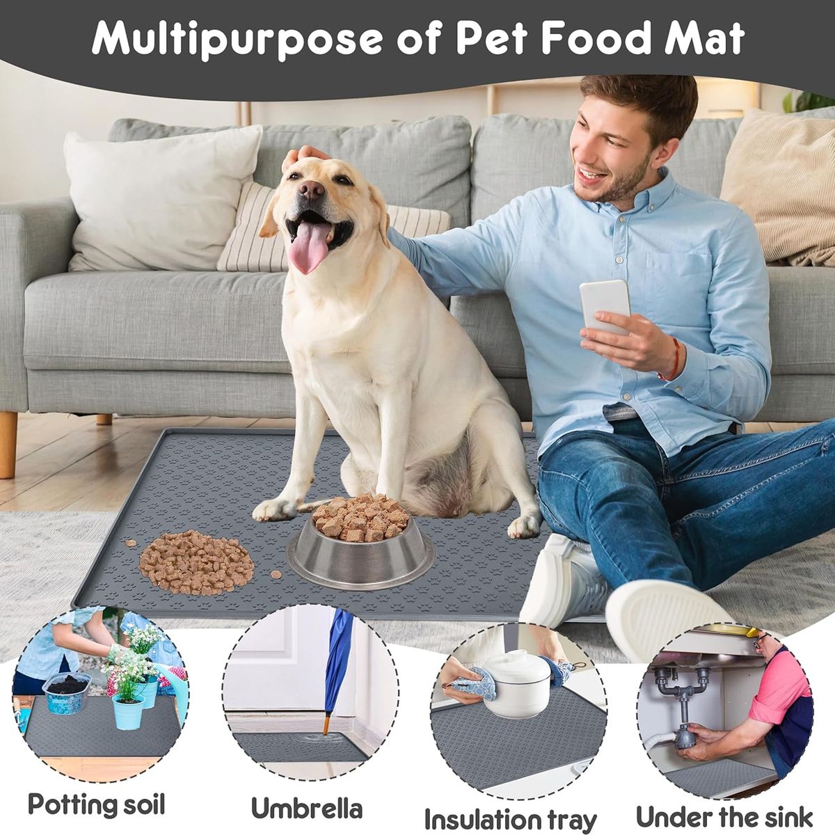 Dog Cat Pet Food Mat Dog Feeding Mat Washable Dog Bowl Mat Sillicone Tray