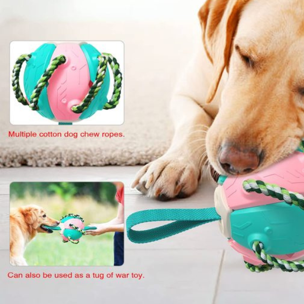 The rebound feature adds an extra layer of excitement to fetch games, keeping your furry friend entertained and active. The inclusion of cotton dog chew ropes serves a dual purpose – stimulating your dog’s herding instincts while effectively removing tartar, rice residue, or dirt from their teeth. This promotes optimal oral health and protects your canine companion’s smile.