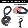 Heavy-duty quality: this rope leash is made of premium rock-climbing grade rope to sustain the strongest pulling (up to 300lb tested), especially suitable for medium-or-large-sized dogs. The adjustable dog harness with rugged nylon handle further enhances your distance from the dog and is more intimate with each other.