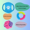 – These dog toys are made of TPR and cotton cloth, non-toxic and washable, safe, it help to clean teeth and massage gums to help change bad dog biting behaviour, this sturdy rope toy is perfect for lonely dogs to play at home, play tug of war with you or as an Outdoor dog toy. It must be your dog’s favourite toy.