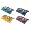 1 x Double Dog Cat Bowls Stainless Steel Pet Bowls No-Spill Resin Station