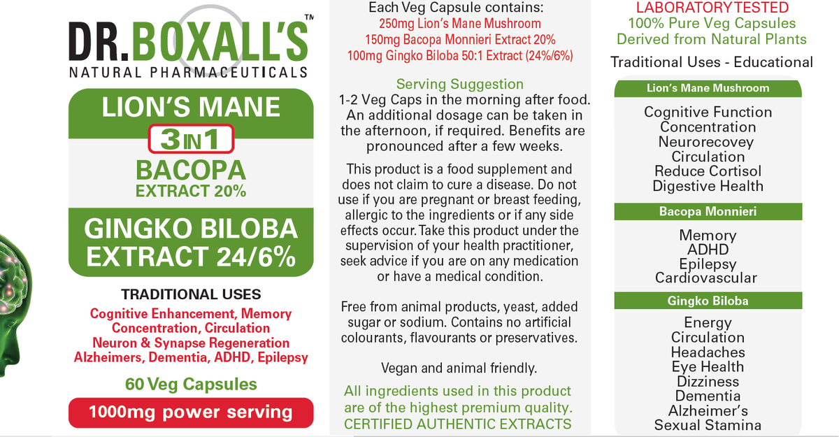 Dr Boxall's - Lion's Mane with Bacopa Monnieri and Ginkgo Biloba 60's