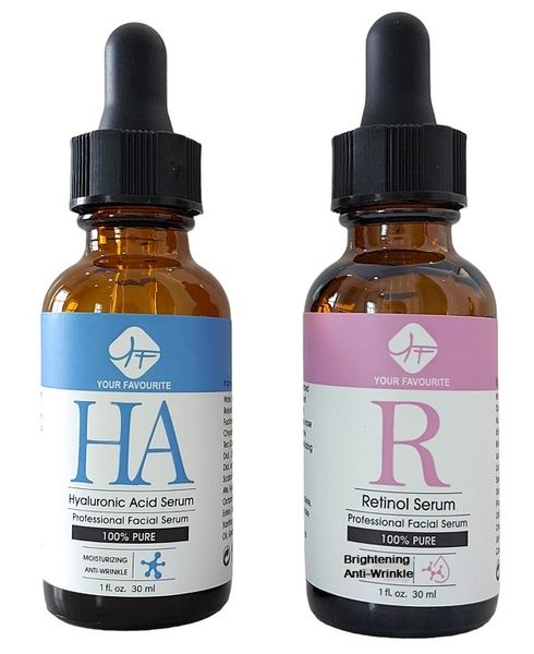 Unveil Your Radiance with the Hyaluronic Acid and Retinol Face Serum Set.