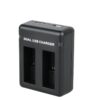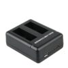 This charger is a dual charger that allows 2 batteries to be charged at the same time. It has dual option of either c type usb or micro usb. The cable that is provided is micro usb.The LED light shows charging indication