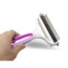 The rounded design at the end of the deshedding tool prevents scratching your pet’s skin during grooming. The inner blade of the rake is sharp enough to gently cut through stubborn tangles and mats without pulling on your pet’s fur.