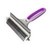 This pet grooming brush has a dual head design, starting with a 23-teeth rake for stubborn mats and tangles, and then a 82-teeth epilation head for removing loose fur. Easy and fast hair removal.