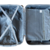 The interior of the luggage is thoughtfully designed with a fully lined compartment, including multiple pockets for organized packing. The cross-straps inside help secure your contents, minimizing shifting during transit. The zippers are robust and reliable, with an feature to increase packing capacity when needed.