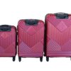Red ABS luggage set, hardside luggage, durable travel bags, spinner wheels, TSA-approved locks, lightweight suitcases, premium luggage set, travel essentials, carry-on suitcase, medium suitcase, large suitcase, scratch-resistant luggage, stylish luggage, textured exterior, diagonal striped pattern, diamond design luggage, telescoping handle system, fully-lined interior, smooth-rolling wheels, sturdy handles, organized travel, elegant travel bags, functional luggage set, distinctive travel bags, burgundy luggage.