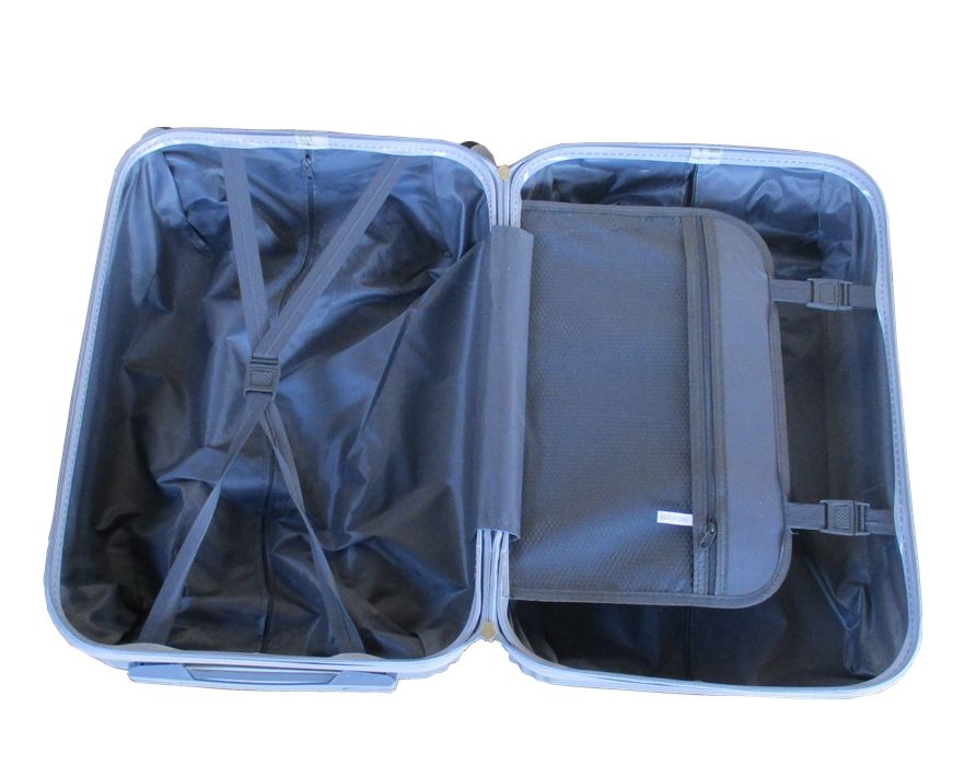 Inside, the suitcases are designed to keep your items organized and secure. The spacious interiors include straps to hold your clothes and other essentials in place, while the zippered divider with an additional pocket is perfect for storing smaller items.