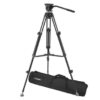 The fluid head features independent pan and tilt locks and comes with a quick release camera plate and removable right-sided pan bar.