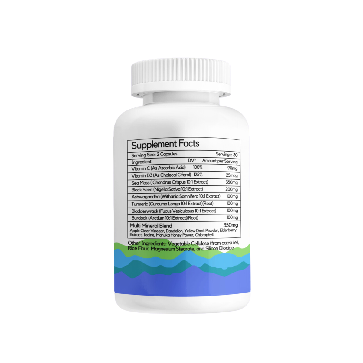 EA Pharma- Sea Moss, Ashwaganda, Black Seed Oil, Burdock Root Multimineral- A natural nutraceutical crafted to be the ultimate daily mineral supplement, vitalizing the body will all vital minerals.