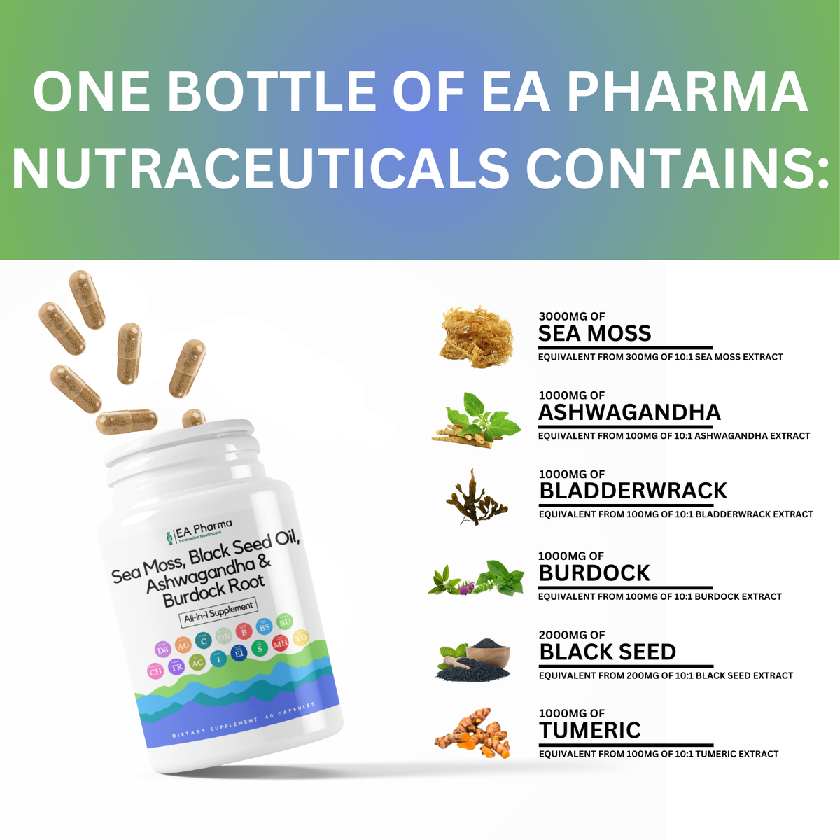 1x EA Pharma- Sea Moss, Ashwaganda, Black Seed Oil, Burdock Root Multimineral