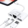1 X 3in1 Plug and Play Lightning to RJ45 Ethernet LAN Wired Network + USB 3.0 OTG