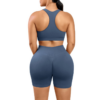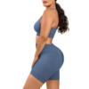 Eco-friendly V-Neck Seamless Sports Bra and Shorts Set, crafted with sustainability and style in mind. Made with recycled nylon, this ensemble embodies our commitment to environmental consciousness without compromising performance. Elevate your activewear collection with our Eco-friendly V-Neck Seamless Sports Bra and Shorts Set, where sustainability meets style and performance