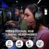 Features dynamic breathing RGB lighting on the ear cups, adding a vibrant and immersive aesthetic to your gaming setup.Surround Sound: