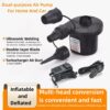 This portable electric air pump is designed for rapid inflation, making it perfect for quickly setting up outdoor camping gear such as inflatable mats, air mattresses, and swimming rings. It saves time and effort compared to manual inflation methods.