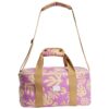 This elegant cosmetic bag combo includes two pieces: a large navy blue bag with white handles and a smaller pink zippered pouch.