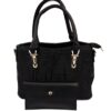 – Single compartment tote handbag with adjustable, removable crossbody strap.
