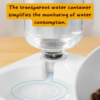 Clean and modern design with transparent water container to monitor the consumption and supply.