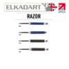 .Cut to the chase and slice your opponents in twain when you bring the Elkadart Razor Steel Tip Darts. These darts are packed with features starting with the barrel, fashioned from 80% Tungsten and 20% Nickel. Tungsten is a very dense metal, able to create slimmer darts with the same weight as lighter metals; this allows for tighter shot groupings without sacrificing control, increasing your scores. Tungsten is a sign of quality and durability as well because of its density. A higher tungsten content will produce a slimmer dart profile than one with less and 80% is among the highest you’ll find in dart set. More tungsten in the dart increases the price as tungsten is a rare metal and its density takes more effort to machine. The increased price gives a higher quality barrel and can improve performance, increasing scores. Each barrel possesses ridgeback grooves with a black oxide coating allowing your grip to remain precise throw after throw. The Razor Darts feature tough, lightweight aluminum shafts. These shafts feature locking holes that allow a more secure fit to your barrel; you won’t find yourself retightening these shafts after a shot or two. Finally, each dart is finished off with the slicing razor graphic adorning each flight, for a sharp look on each dart.