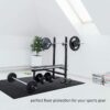It comes with a non-skid textured surface pattern; each piece with 1cm thickness provides shock absorption; is noise-reducing and water-resistant making it easy to disinfect for hygienic purposes.