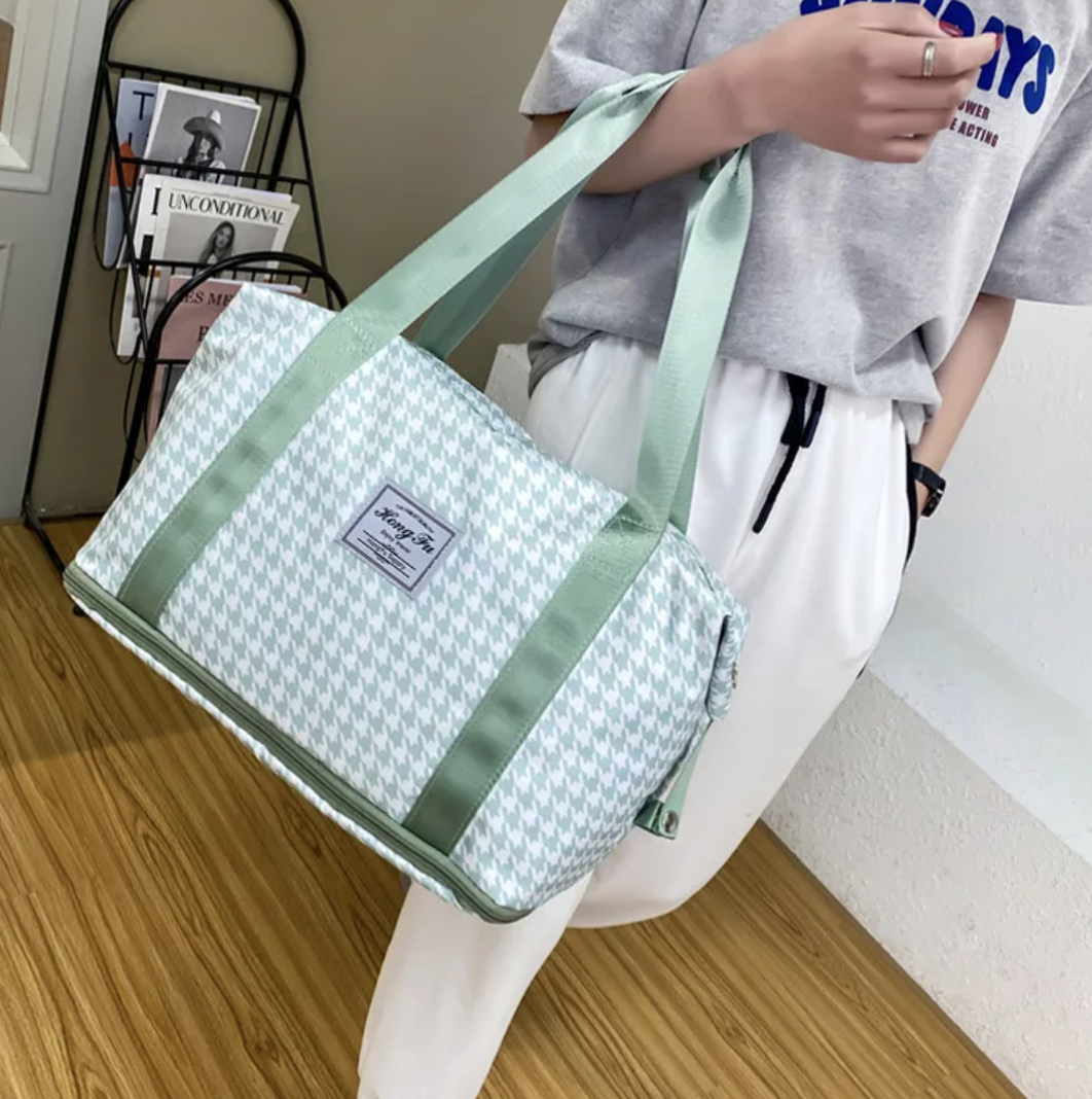 Expandable Houndstooth Travel Duffel Bag – Mint