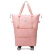 Rolling Duffle Bag with Spinner Wheels This duffel bag for traveling is equipped with four detachable wheels at the bottom, which makes it easier to pull even on rough or uneven surfaces, allowing the bag to move smoothly in any direction, making it easy to navigate through crowded airports, train stations, or busy streets. with 360 swivel wheels, you don’t need to tilt or lift the travel bag, which reduces strain on your arms and shoulders during travel
