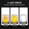-Three different lighting gears, white light, warm light, flame (white light infinitely dimming), suitable for different needs. The lantern is used to create a warm camping atmosphere.