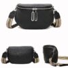 Fashionista Leather Bum Bag – Tartan Woven Strap included – Black