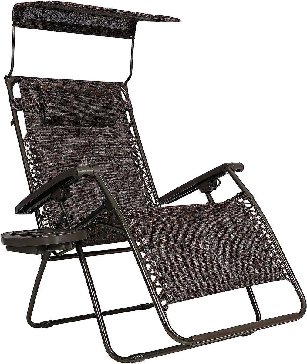 The Zero Gravity Chair with Canopy and Side Tray, Blue/Brown Jacquard