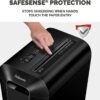 SHRED SAFELY – This Fellowes paper shredder features patented Safesense Technology stops your LX65 from shredding when hands touch the paper entry making it ideal for safely shredding your documents in the home office environment.